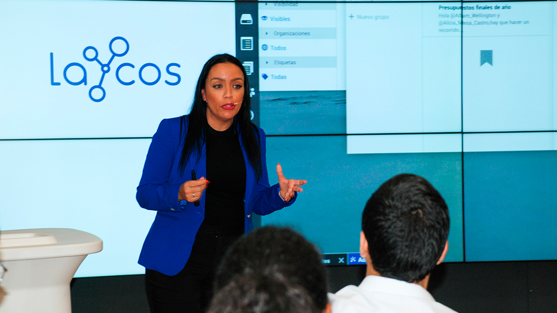 Davinia Arencibia showed the attendees how Laycos can help their communications, productivities, and management of projects in different countries.